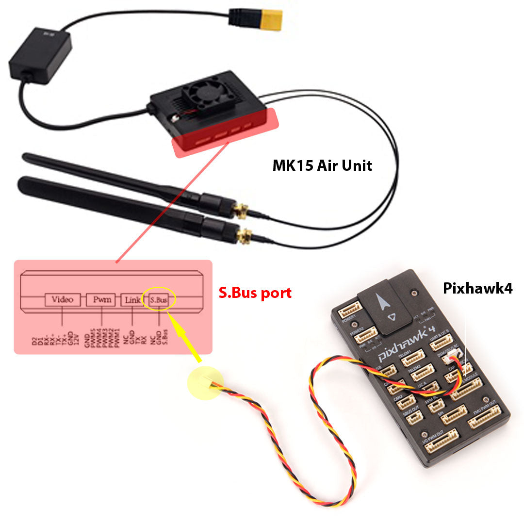 This cable is used to connect Pixhawk 4/Pixhawk 4 Mini/Pixhawk 6C to the SIYI MK15/HM30 Air Unit.