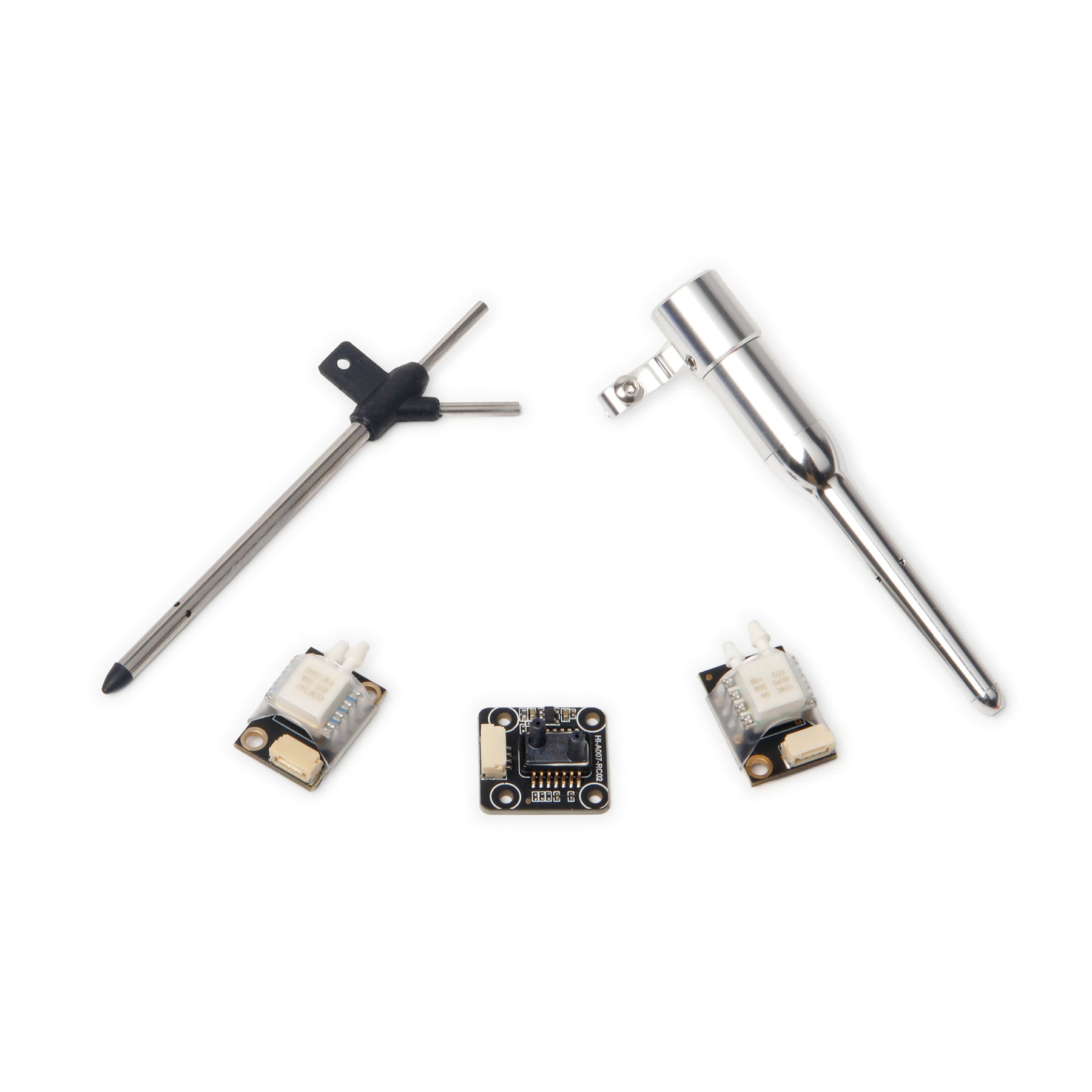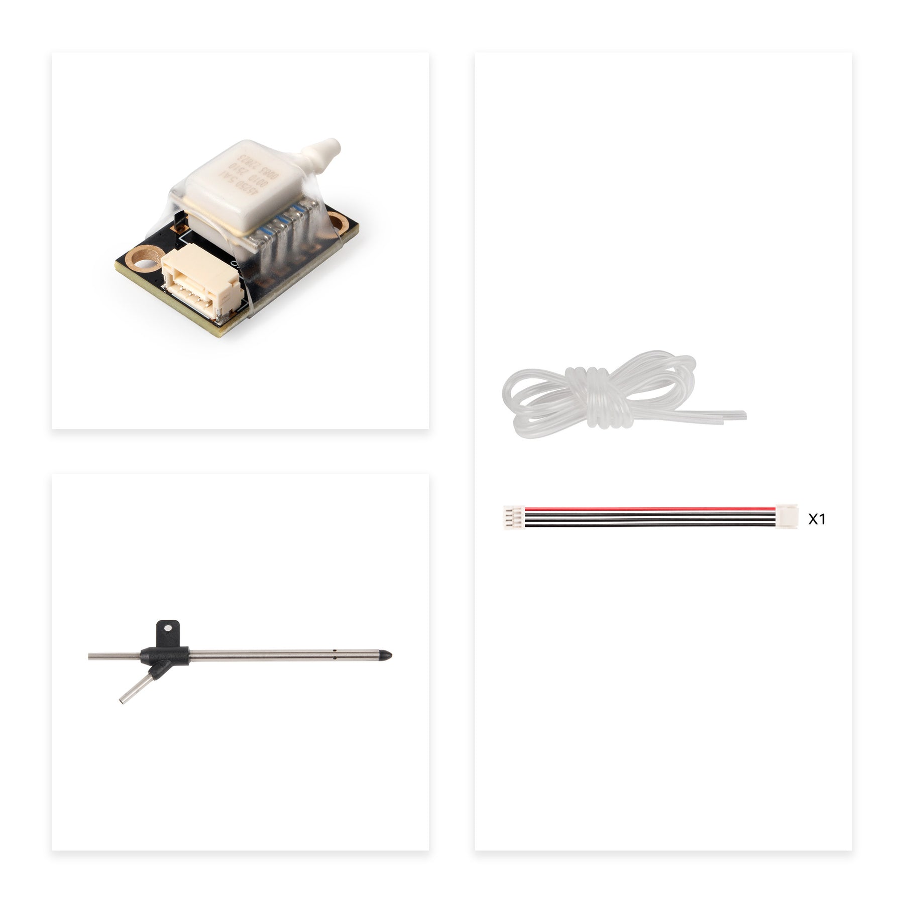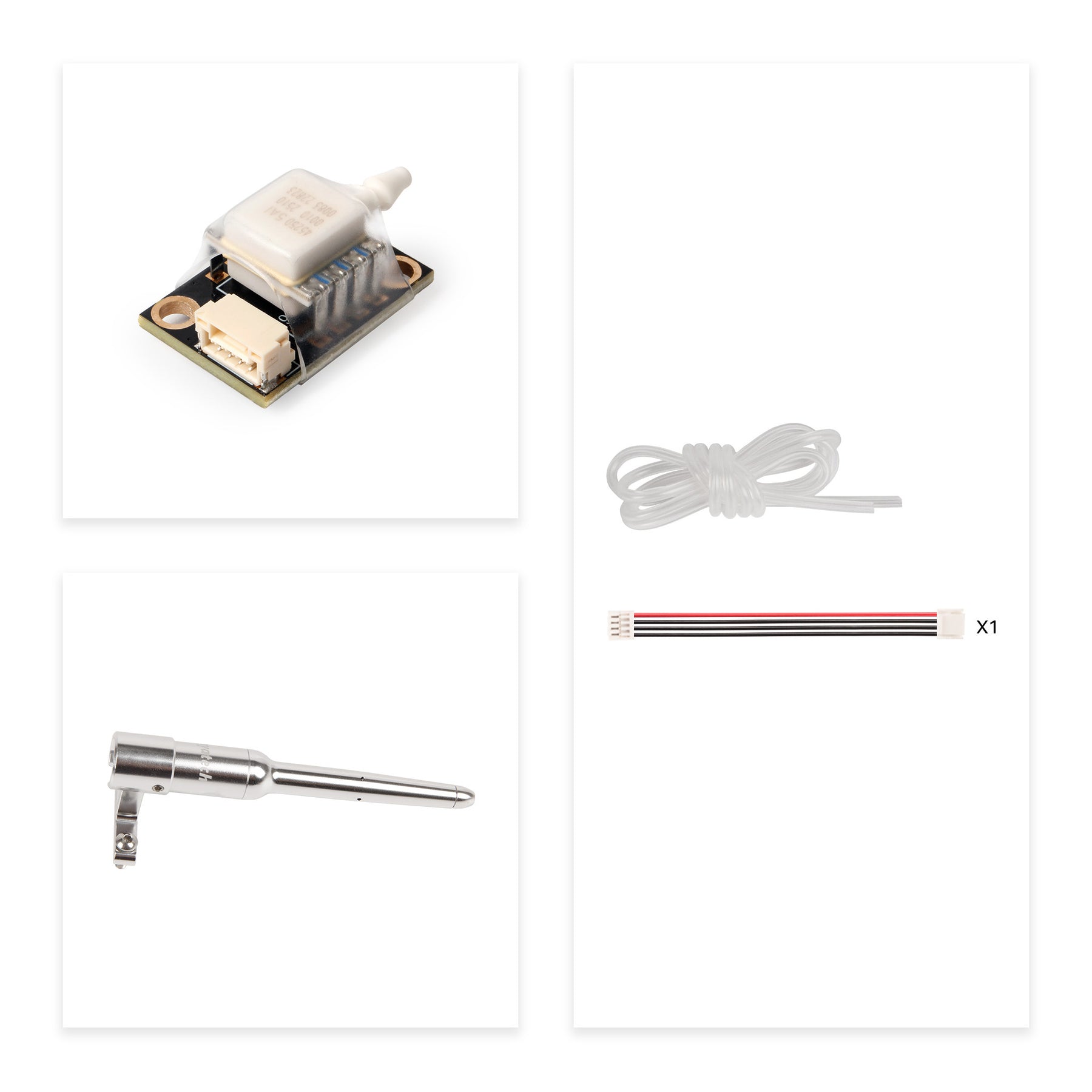 All standard precision sensors come with temperature compensation. It measures temperature to calculate true airspeed from indicated airspeed, using the static pressure sensor on the Flight Controller. Not affected by the heat of nearby processing components, it is much closer to ambient air temperature than in previous analog sensor setups. Supported on all Pixhawk Flight Controllers, this kit comes with M3 / 6-32 mounting holes.