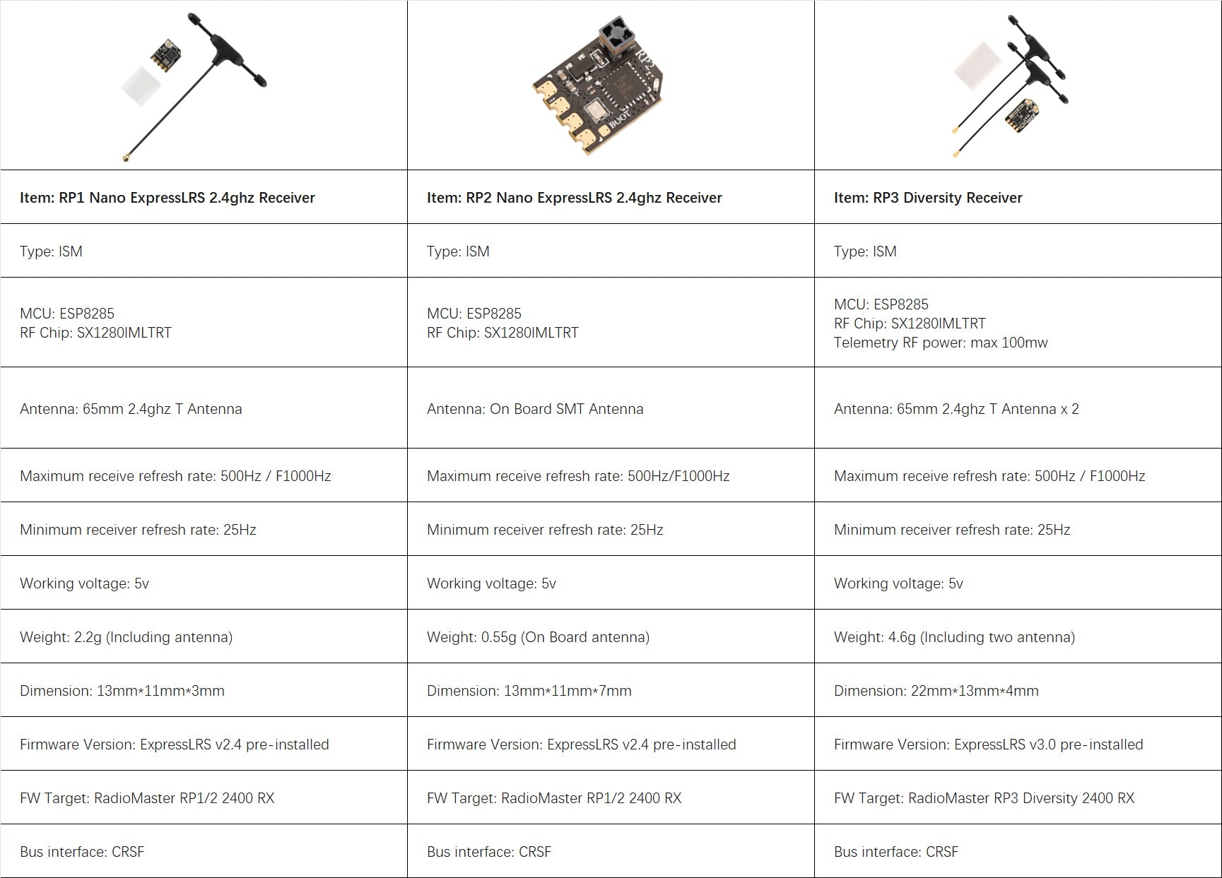 Except for the RP3 Receiver, we also provide the RP1 and RP2Receiver for your choice.