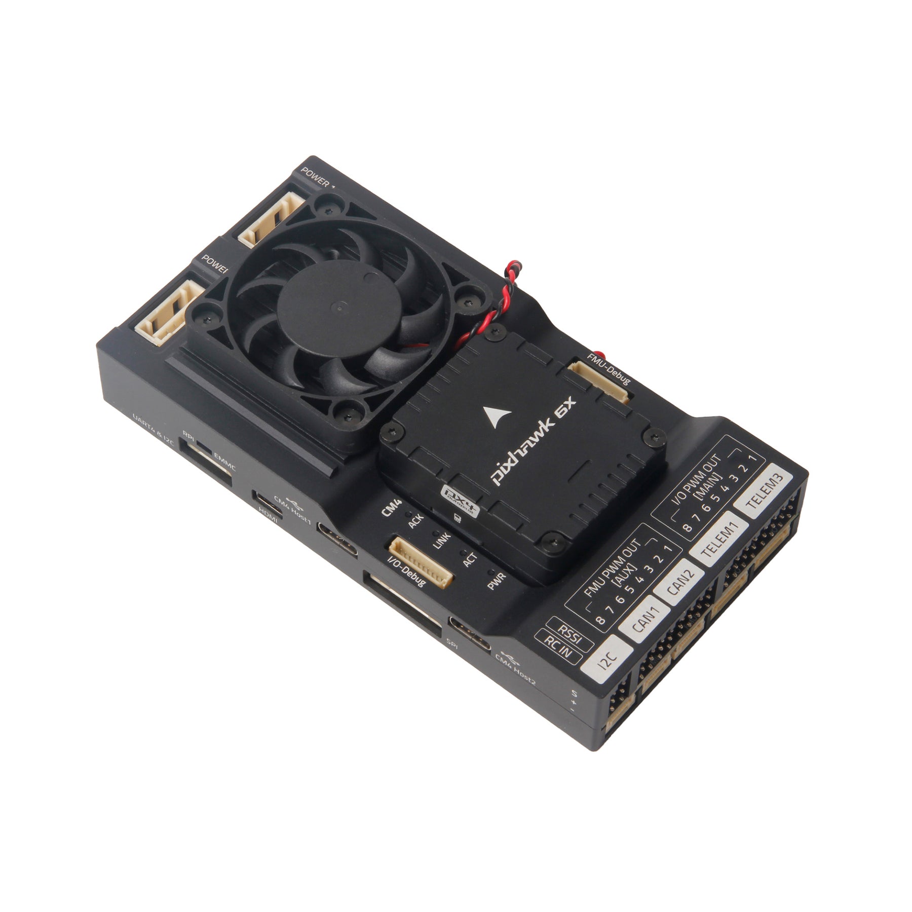 It follows the Pixhawk Connector and Bus Standard, allowing easy swapping of the FC Module with any FC that follows the Pixhawk Bus Standard. The FC Module is internally connected to RPi CM4 through TELEM2, and can also be connected via ethernet with an external cable provided. It is compatible with the Pixhawk 5X and 6X flight controller modules.