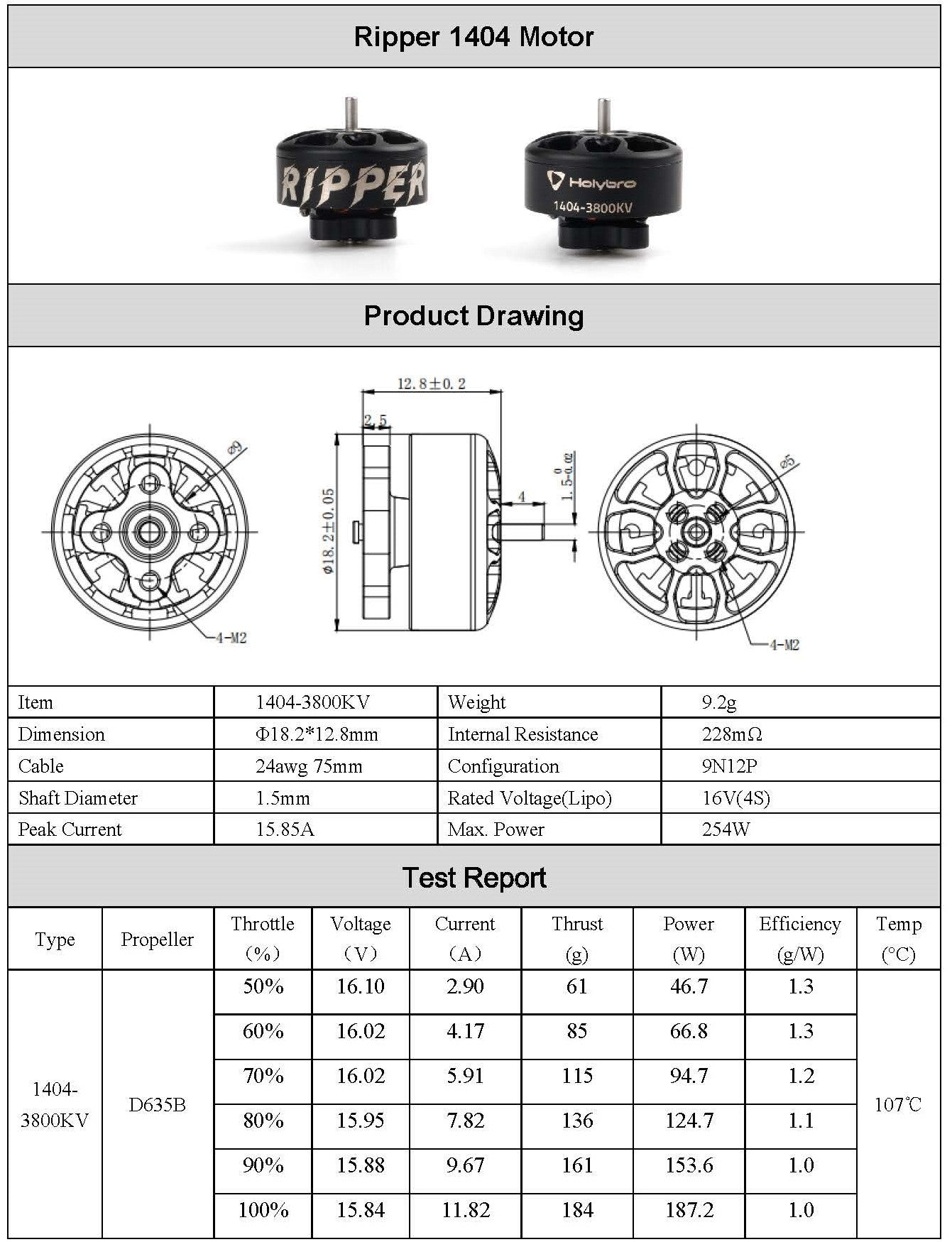 The Ripper 1404 is an ultra-lightweight & high-performance motor with excellent efficiency, made for all 2.5”- 4” lightweight freestyle, cinematic, and long-range drones with 3S or 4S setup.